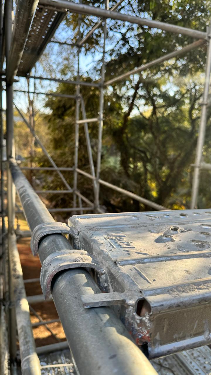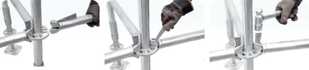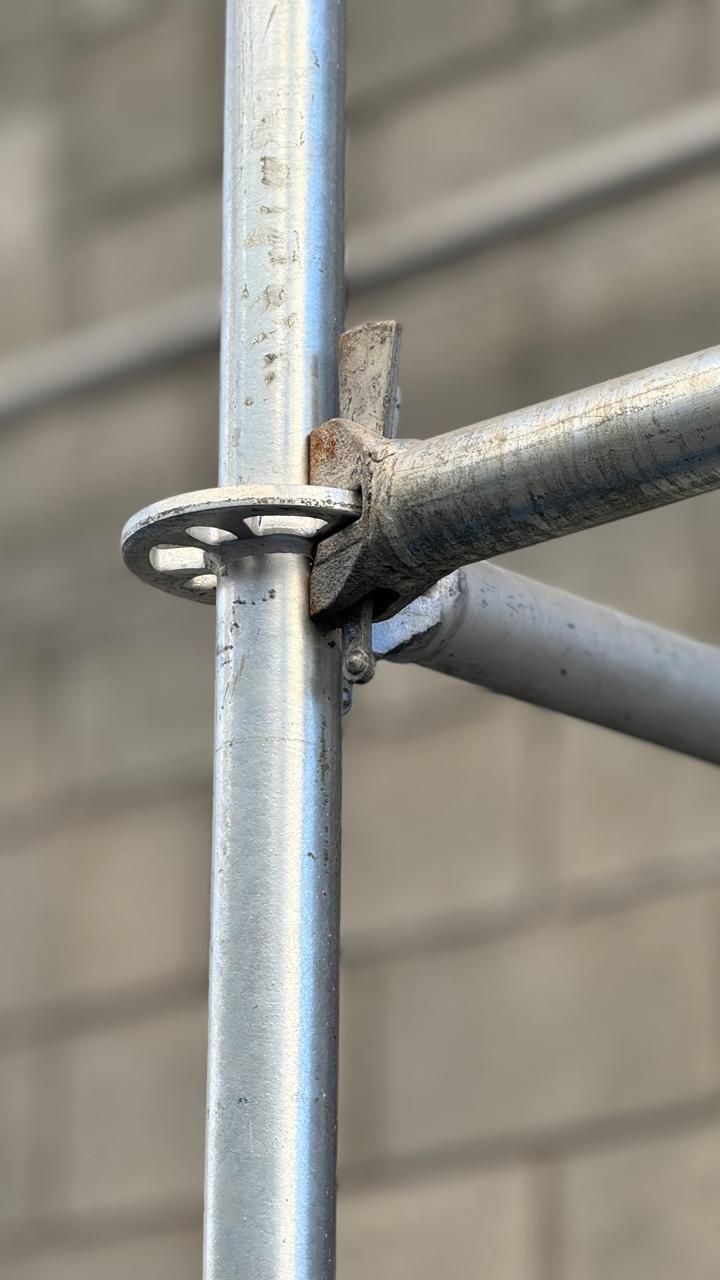 O sistema de travamento com conexões em cunha garante que o andaime permaneça firme e estável durante a montagem e o uso.